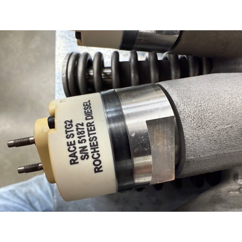 Cat C15 race-only injectors. Stage 2 completely rebuilt in-house at Rochester Diesel with all new parts. These injectors contain an 11 mm plunger that has been DLC coated. The nozzle has been custom micro-flowed through the process of extrude honing to flow 85% more that the largest stock C18 nozzle. Overall the Stage 2 injector flows 200% more fuel than the largest stock C18 injector.